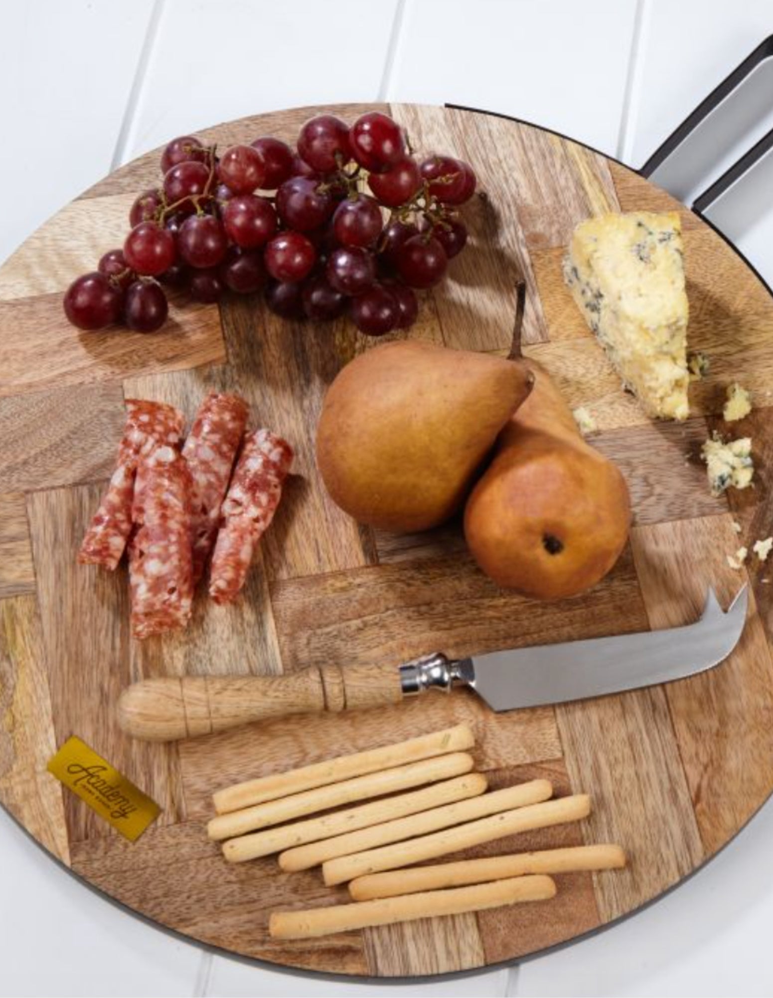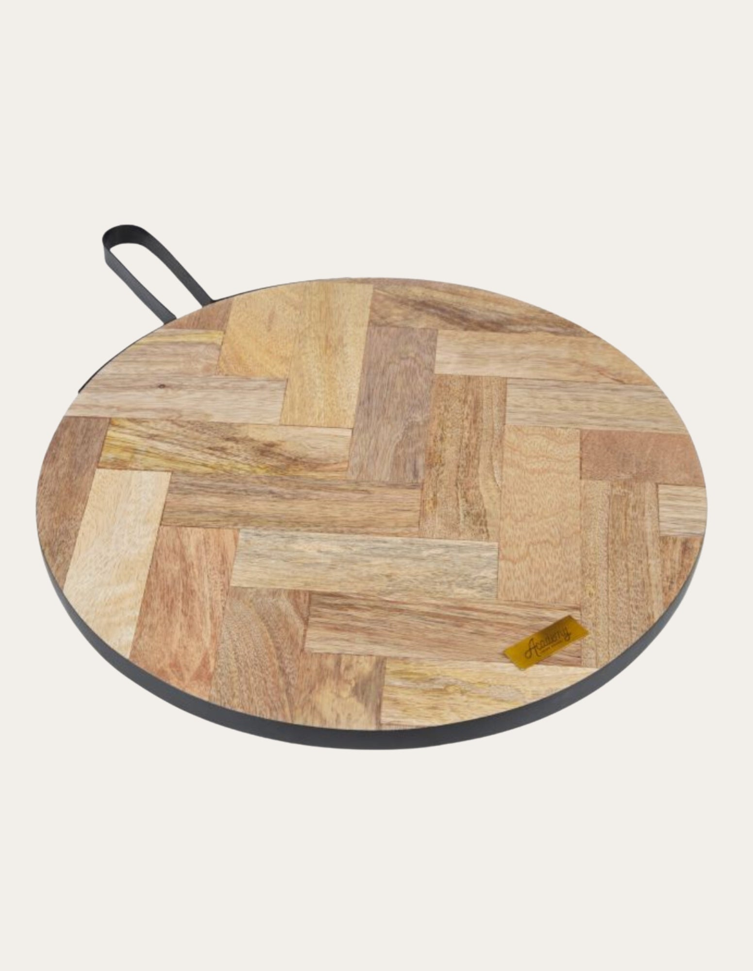 Fabriqué en bois de manguier, son aspect parqueté rustique se prête parfaitement aux plateaux de charcuterie.